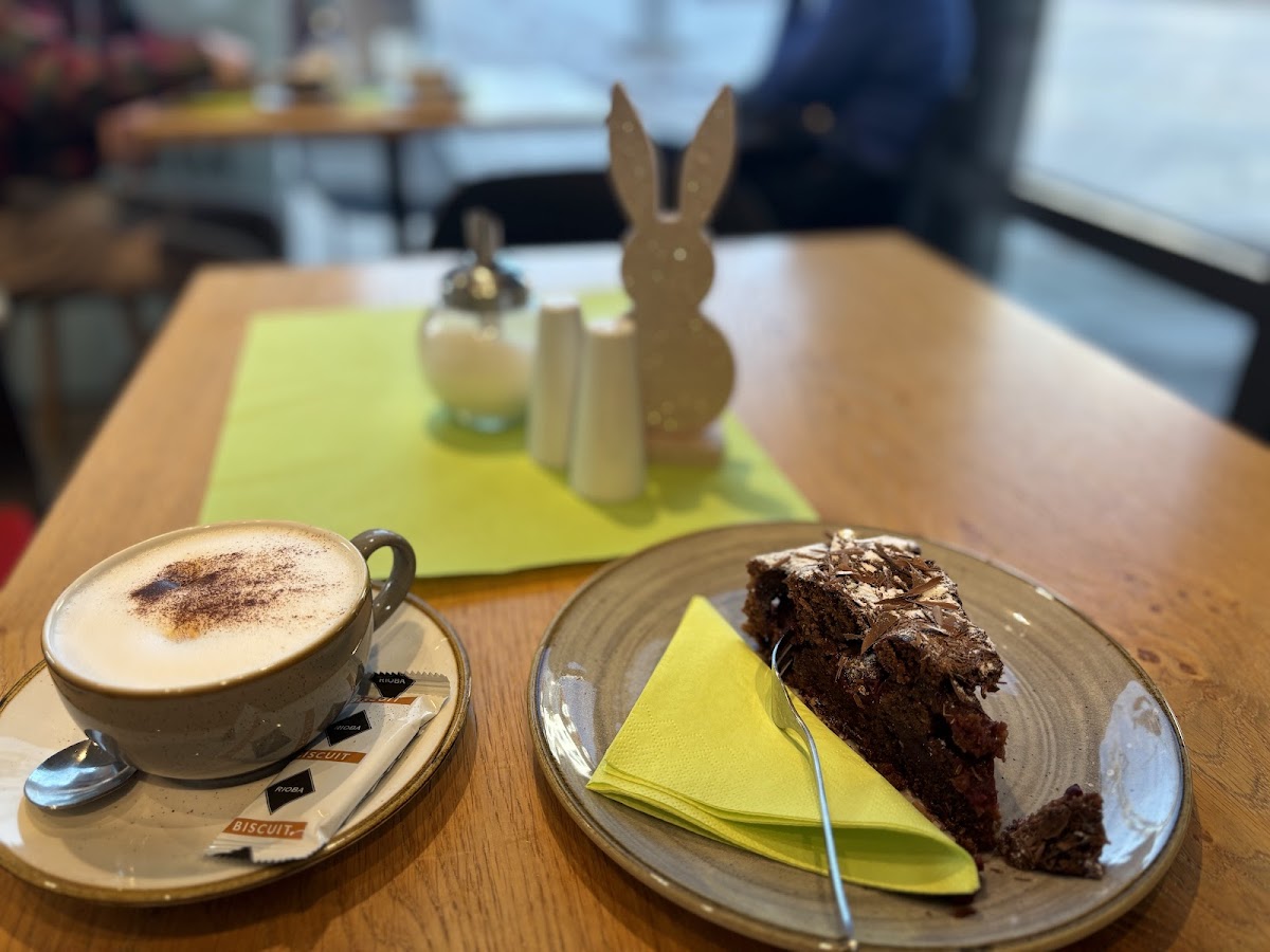 The menu leans towards comforting, well-portioned dishes such as aubergine lasagna and hearty Schweinegeschnetzeltes with rice and mushroom sauce. Portions are generous, meeting the expectations of visitors who stay for a satisfying lunch or afternoon slice of cake. The blend of sweet and savory options supports a range of reasons to visit — whether it’s a coffee break, a relaxed brunch, or a simple meal out.
