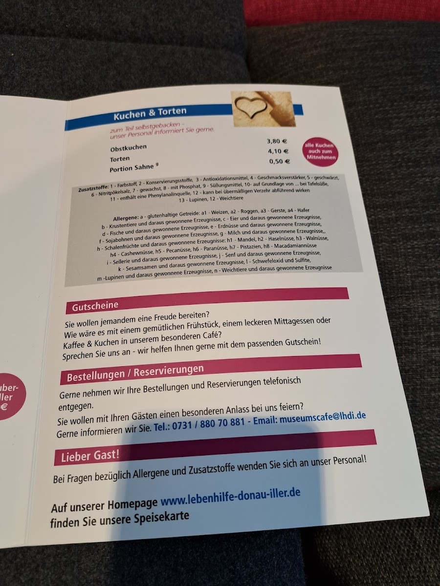 Museumscafe am Petrusplatz der Lebenshilfe Donau-Iller e.V. Menu
